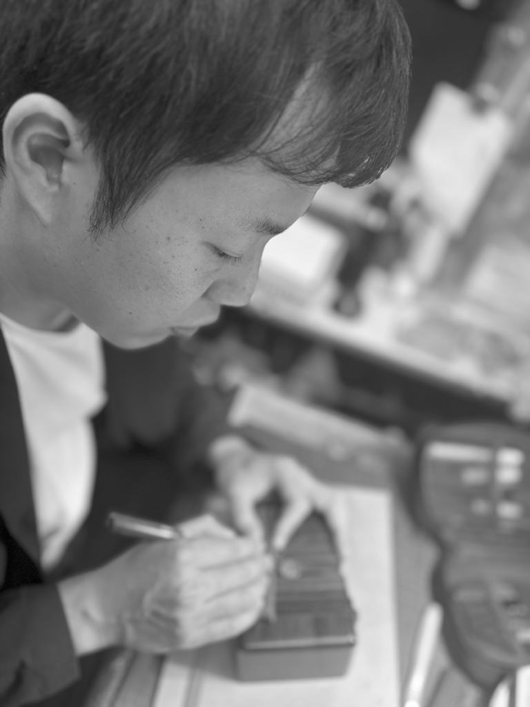篆書体(てんしょたい)の中でも柔らかい感じの出る小篆風(しょうてんふう)の文字を使用し筆意を意識して仕上げました。